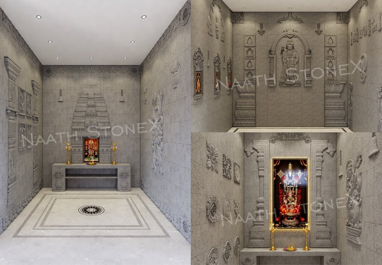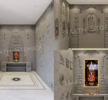 Discover our custom stone designs for pooja rooms, tailored to your specifications, blending functionality with traditional aesthetics for a unique spiritual experience.