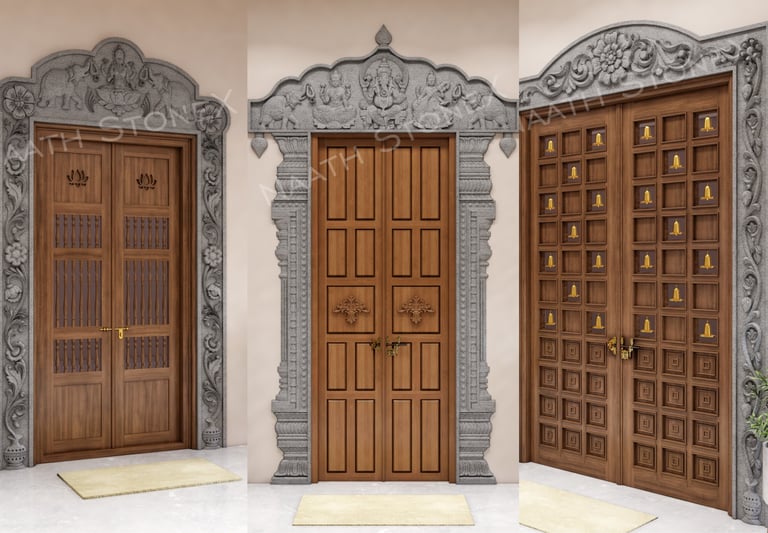 Explore our traditional pooja room designs, crafted from premium black stone, ensuring a serene and spiritual ambiance for your home.